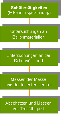 Als Einstieg eignet sich ähnlich dem Vorgehen wie beim Projekt eine kurze historische Reflexion zu den Ballonversuchen der Brüder Montgolfier in Verbindung mit Freihandexperimenten, einer Videoaufzeichnung und dem Informationsmaterial. Im Kontext der physikalischen und technischen Betrachtungen zu den Ballonversuchen der Montgolfiers entsteht das Motiv, die physikalischen Bedingungen für einen erfolgreichen Ballonstart genauer zu erforschen. Daraus ergeben sich die folgenden zielorientierenden Fragen, die im Laufe des Unterrichts beantwortet werden sollen:
