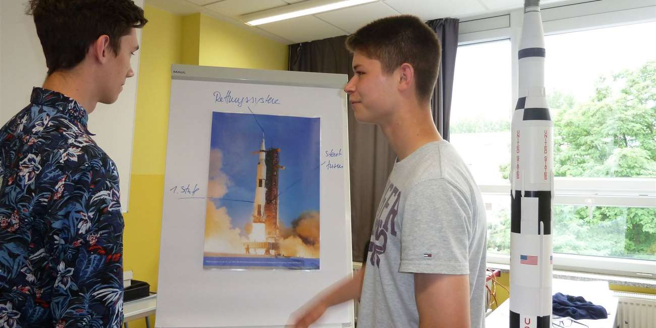 Das Apollo-Programm ist eines der größten technischen Abenteuer der Menschheitsgeschichte. Bis heute. Wir können dieses Abenteuer gemeinsam mit Ihren Schülern in einem Workshop in Ihrer Schule nacherleben. Das Thema eignet sich hervorragend für einen kontextorientierten Einstieg oder Abschluss des Stoffgebietes Gravitation in der Klasse 11 und ist als Kommunikationstraining konzipiert. Selbstverständlich ist es auch attraktiv für die fünfte Prüfungskomponente im Abitur. Wir bringen alles mit: Konzepte, Informationsmaterialien, Arbeitshefte, Bücher, Poster, Tablets, Modelle, Videos und Experimente. Der Schüler-Workshop würde so organisiert, dass Sie das Vorhaben in den Folgestunden fortsetzten könnten. Deshalb stellen wir Ihnen die meisten Materialien im Anschluss kostenfrei zur Verfügung. Fliegen Sie mit uns zum Mond!